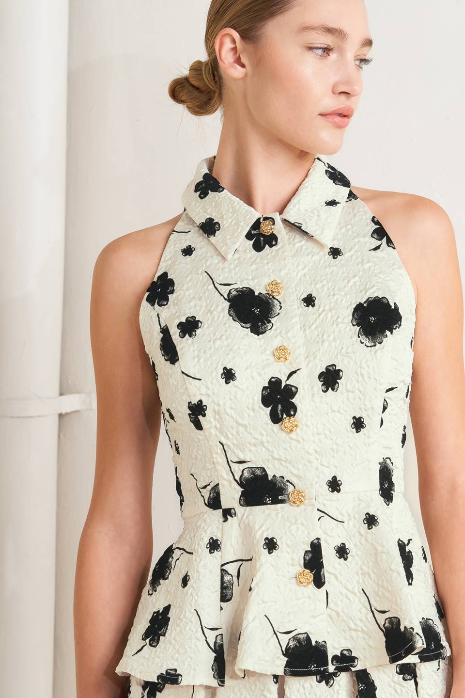 Su corte favorecedor y detalle peplum crean una silueta femenina y estilizada.