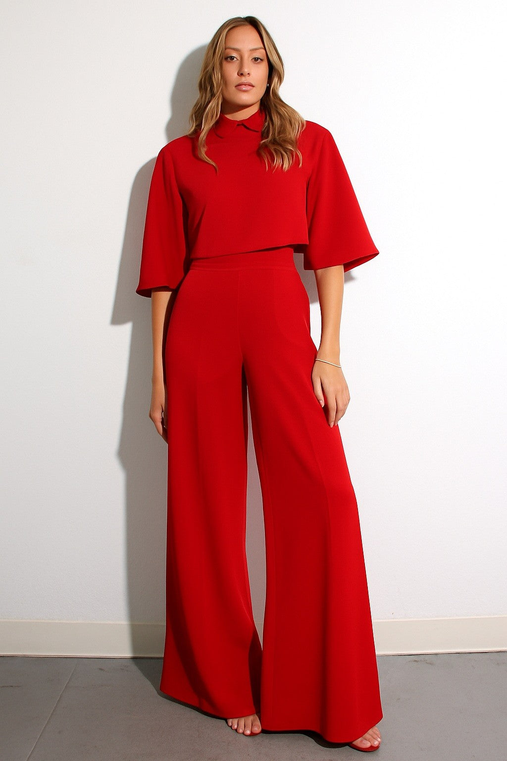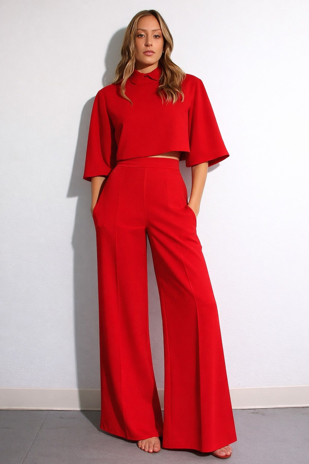 Un conjunto que habla por sí solo: silueta fluida, líneas limpias y un color que transmite seguridad, poder y elegancia.